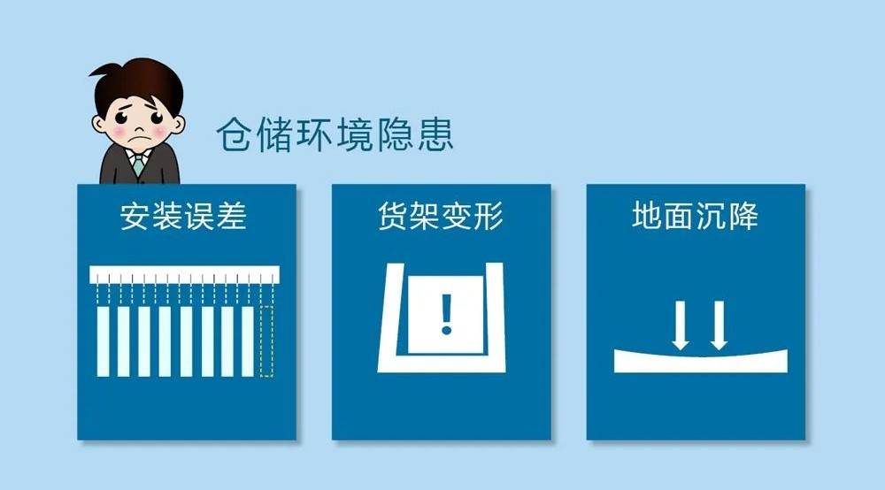 堆垛機存取物品時需要精確感知環境包括貨架欄位的狀態、貨物的精確位置等。長期運行時,各種細微誤差的累積,也會導致事故發生